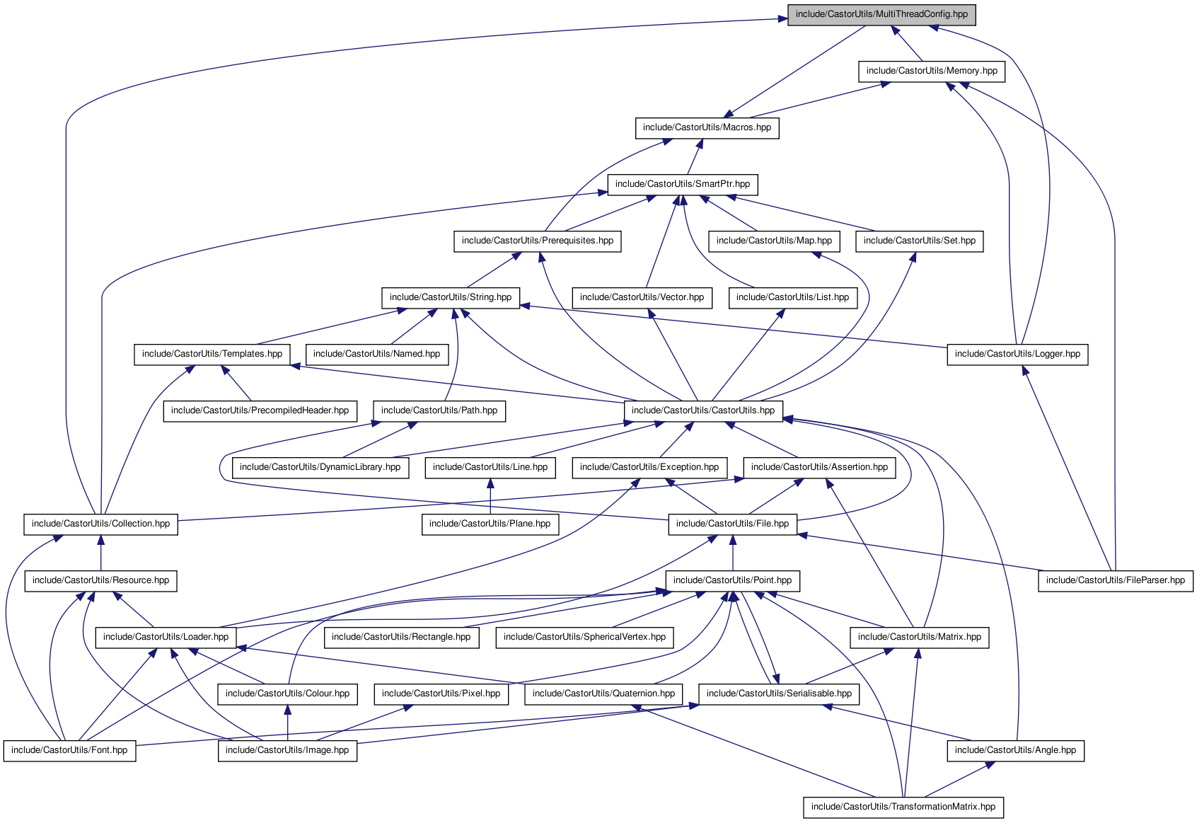 Graphe des dépendances par inclusion de MultiThreadConfig.hpp: