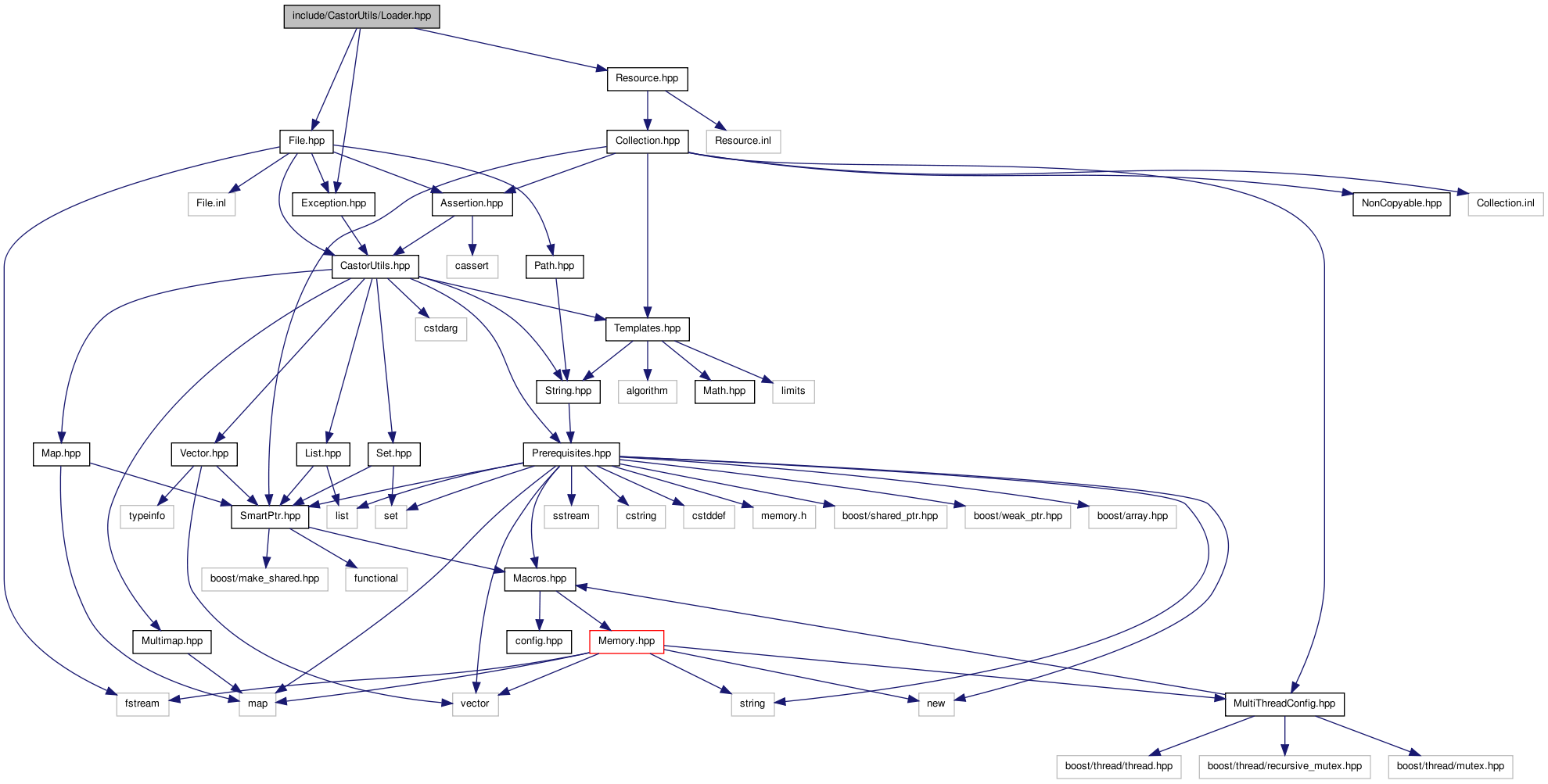 Graphe des dépendances par inclusion de Loader.hpp:
